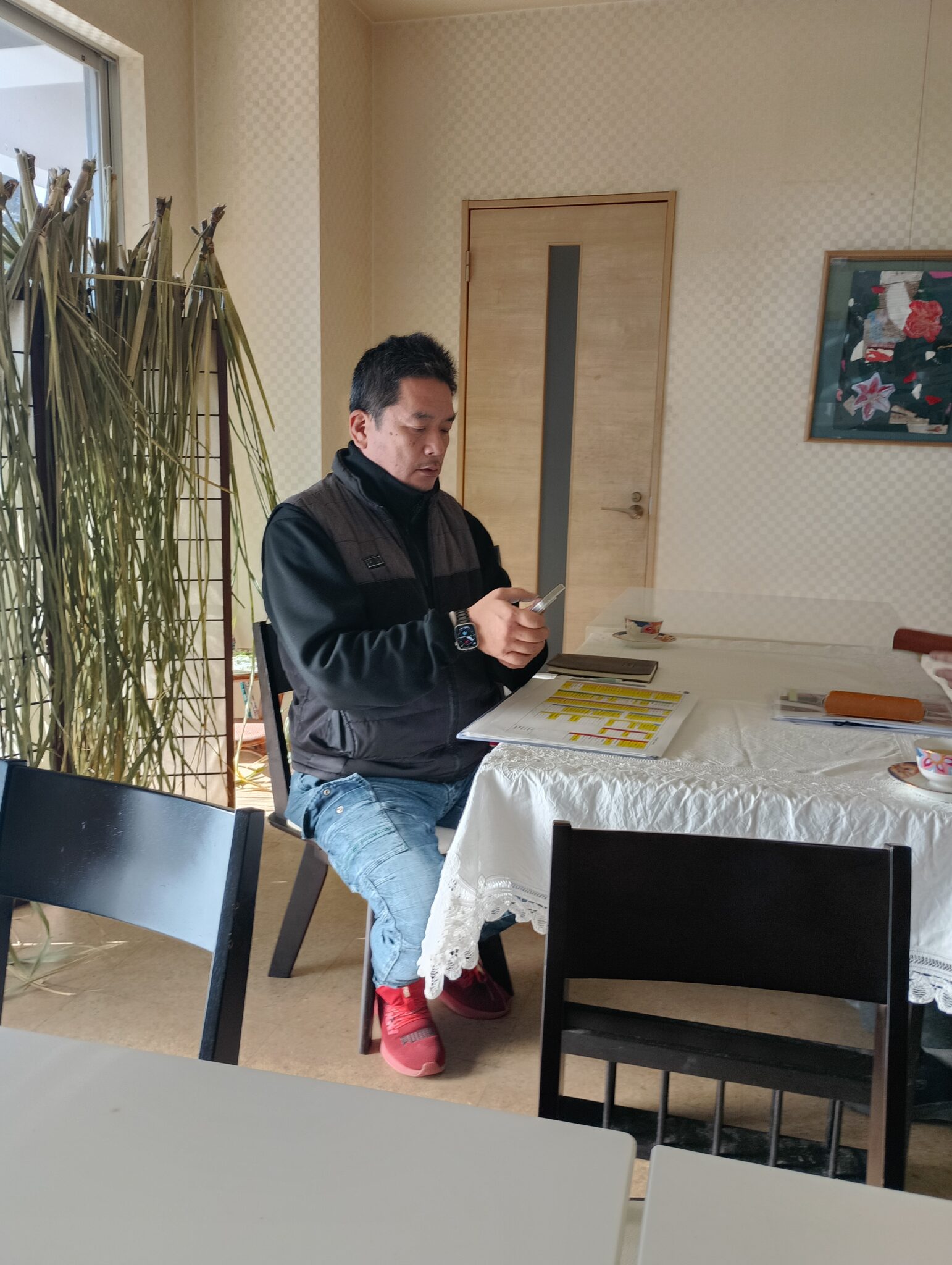 朝一番、役員三ツ矢木材社長、永田世話人様、玉垣工事進行内容と、手水社工事のお話しが有りました。工事、お仕事の丁寧さと真心が有難く感じる、幸せ一番の朝でした。
