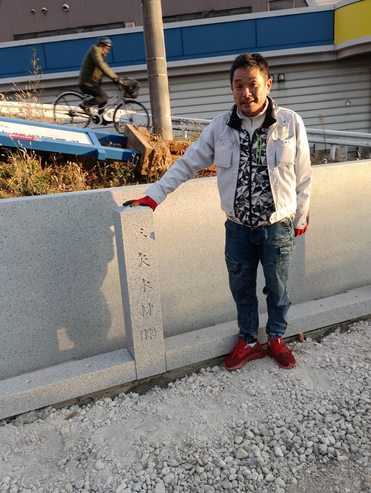 三ツ矢木材様、永田様の、親柱が立ちました。立派で、とても良い玉垣です。皆様の分が、全て建ちましたら本当に見事なあたたかさに、包まれた参道となります
