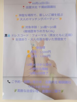 出雲大社千葉総国講社、出会いパーティー、十月十二日