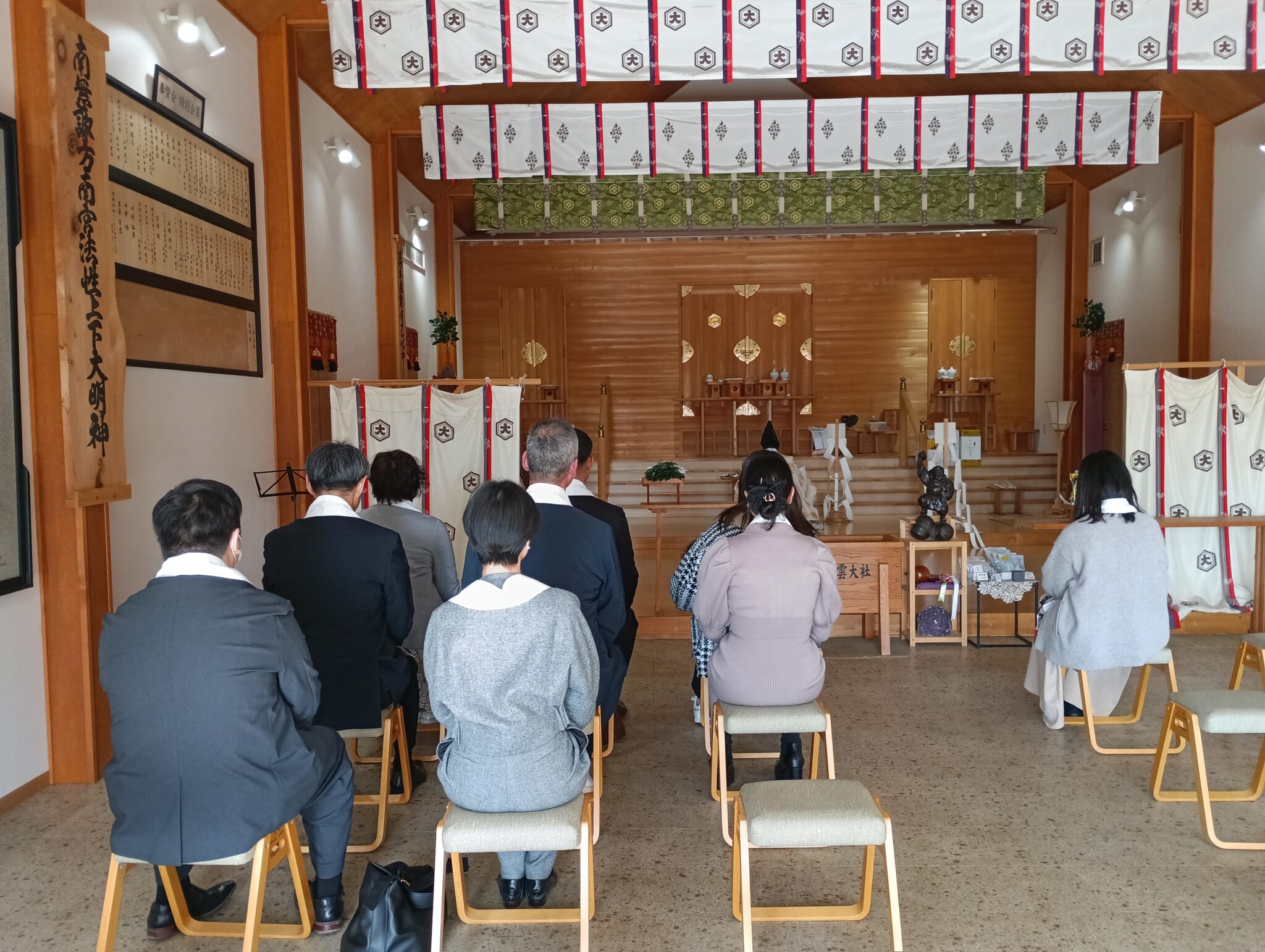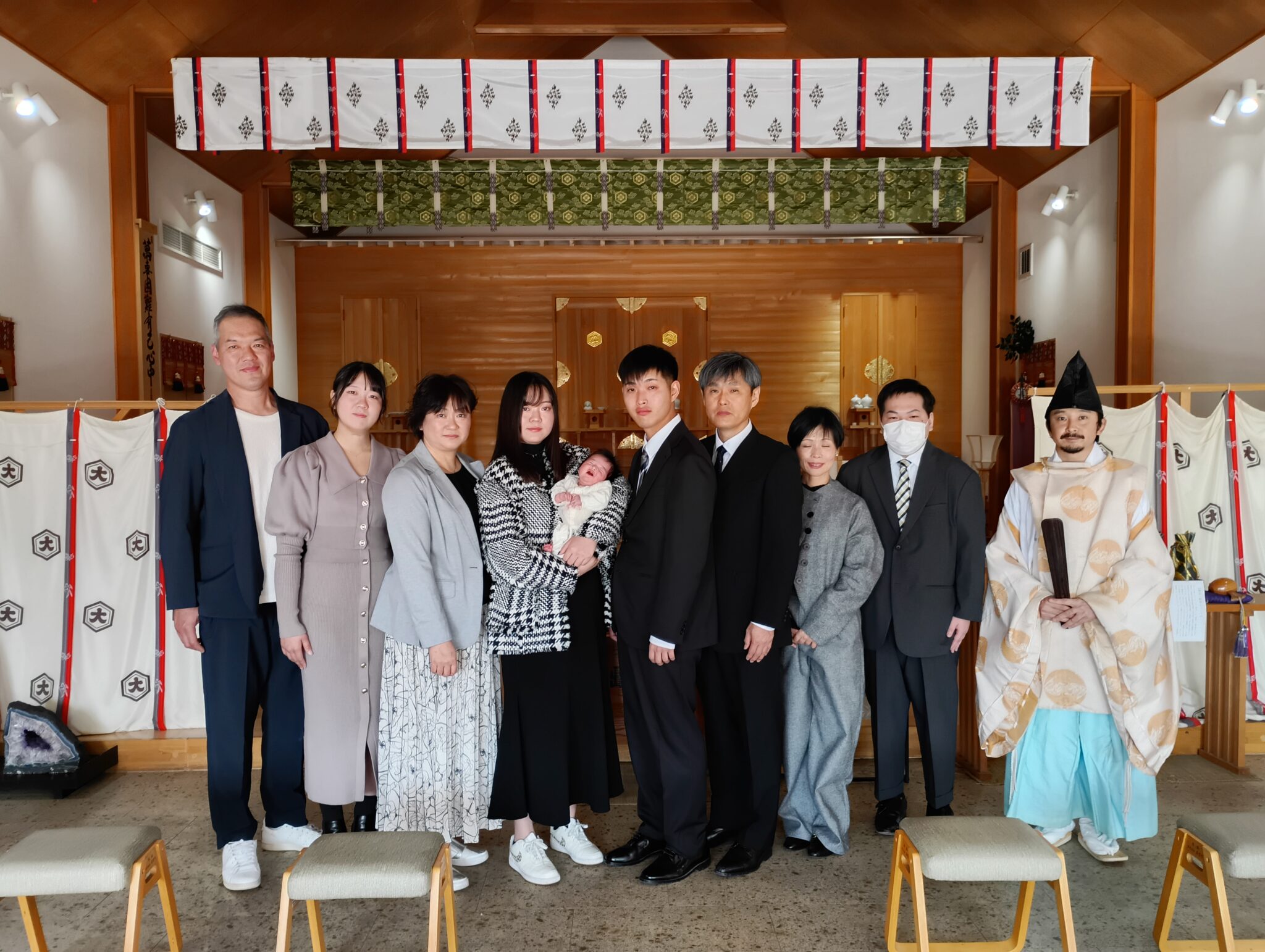 午前十一時から、行われました 初宮参り 子授け祈願 初宮参りでは、お元気な可愛いお子様と、御家族様のお幸せな皆様につつまれての、お参りに、 大国主大神様もお喜びになられておられます。お健やかに、大きくお育ちになるお姿が、お幸せおめでとうございます。 子授け祈願、これより大国主大神様の御加護の元、お元気なお子様のお授かりを願いの御祈願、心よりお祈りを申し上げました。
