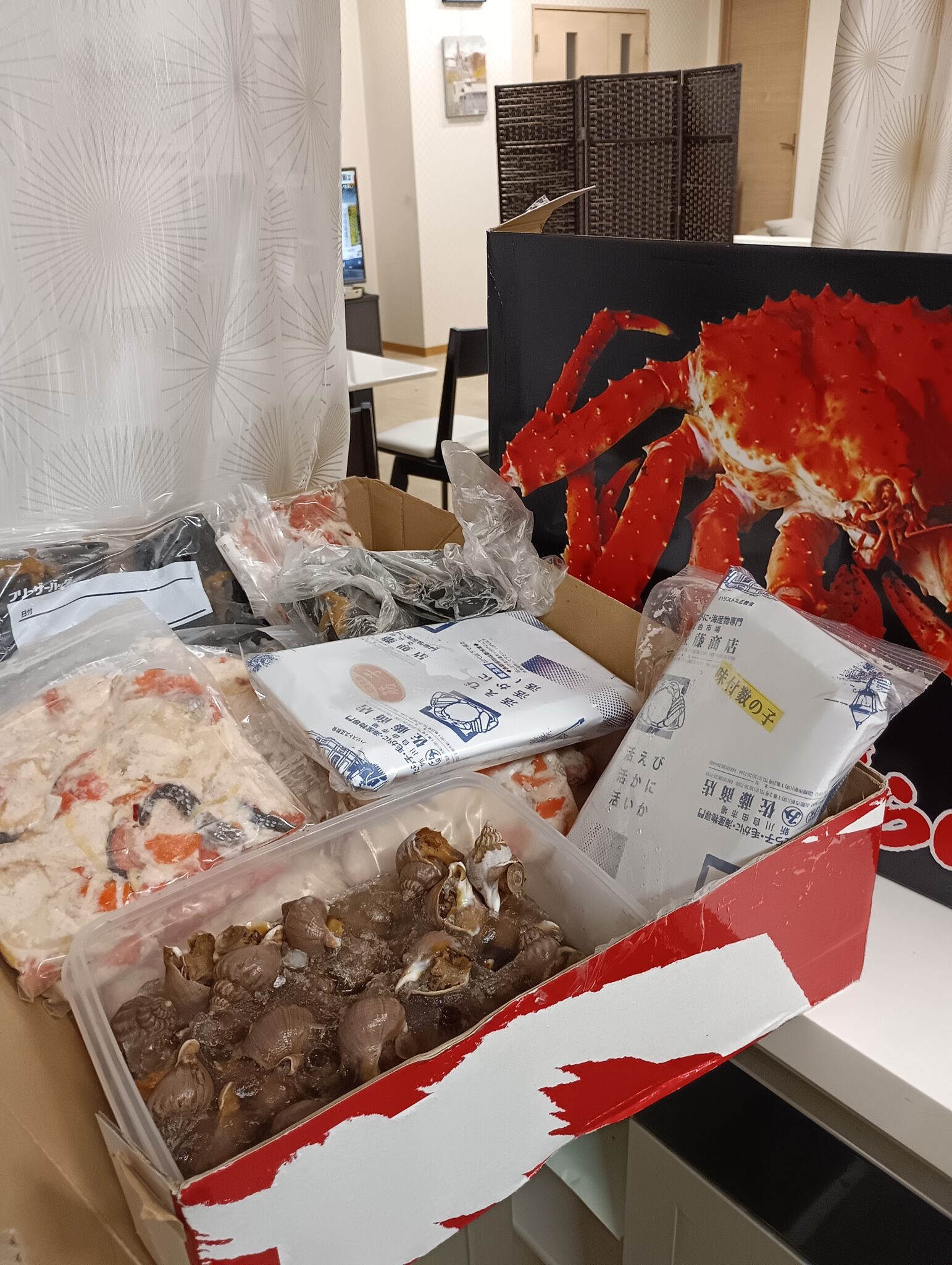 函館の寿司屋 妹夫婦から北海道の宝 海の幸 第一便かわ届きました。妹夫婦が作ってくれた、美味しい、いずし、昆布巻き巻き貝の煮物、数の子、筋子、シャケ 数の子、大量な宝物 有難くとても嬉しいく、幸せいっばいです。又、明日 第二便が届くそうです。本日幸せ感 一日中続きました。