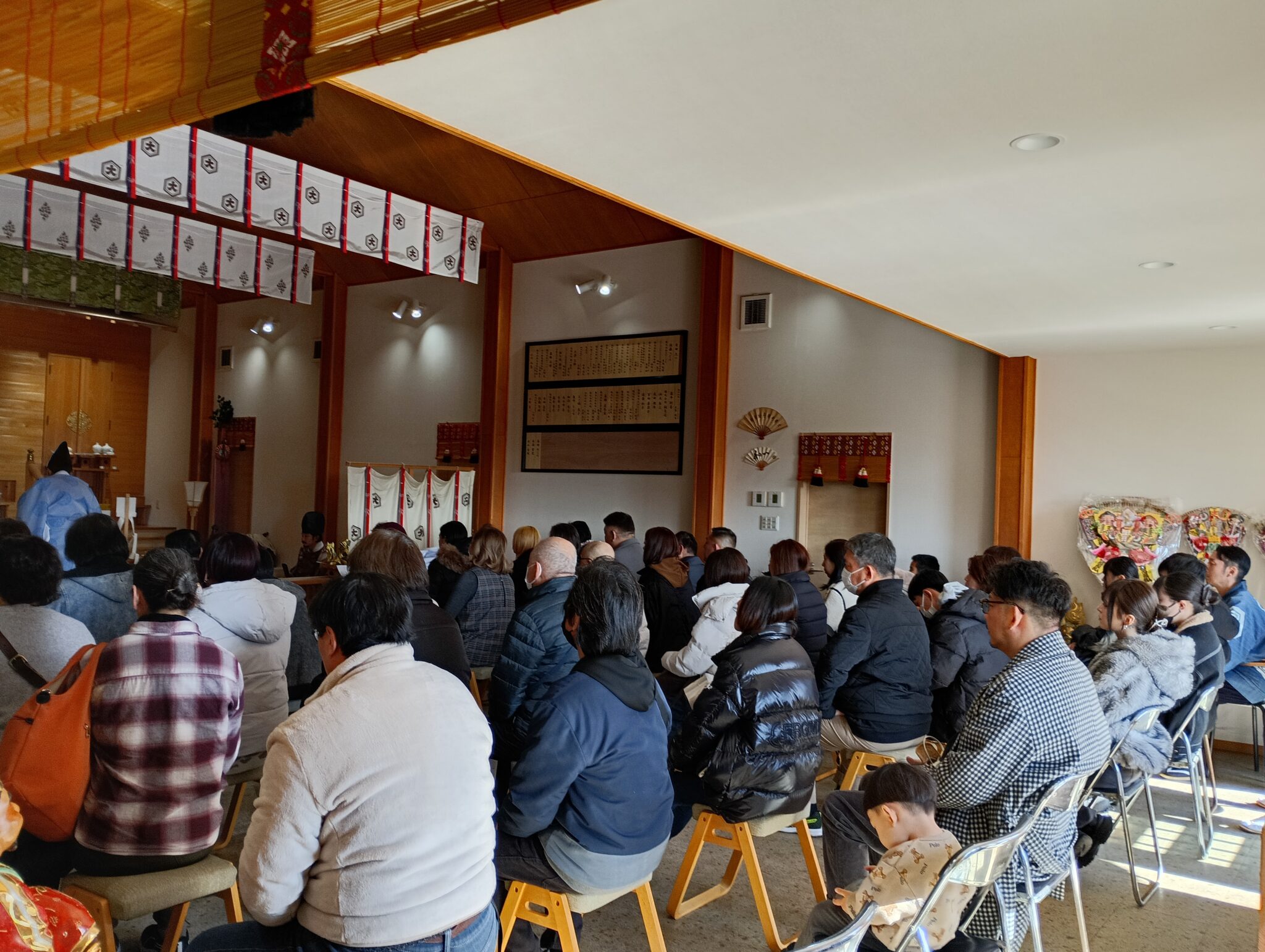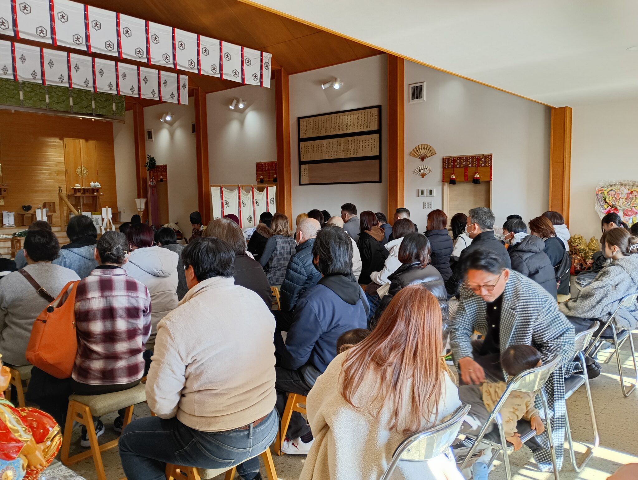 午前十時から行われました 令和八年の、元旦祭は、素晴らしい崇拝者の皆様と、笑顔溢れます、感謝の祈り祭となりました。皆様のお言葉の中御縁で、仕事もよくなられる上昇にて、感謝の言葉多く、沢山の幸せを感じました。素晴らしい元旦祭となりました事を大神様もお喜びになられ、関係者の皆様の笑顔も溢れます、元旦祭となりました。過去一番の御参列に、歩く隙間さえ亡くなりました。感謝の一年の始まりとなりました。